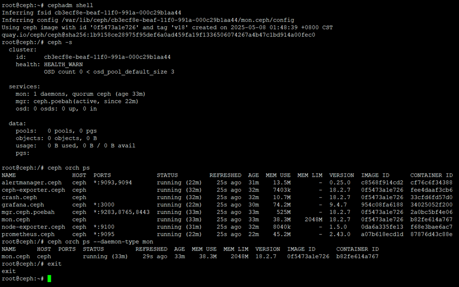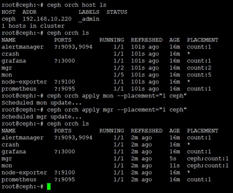 root@ceph:~# ceph orch apply mon --placement="1 ceph"