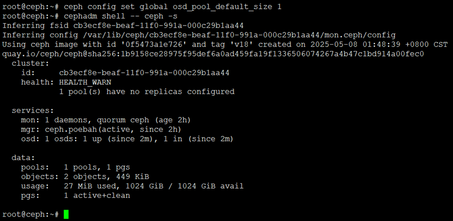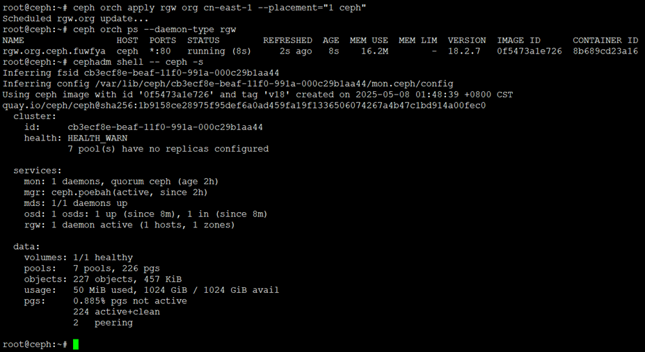 ceph version 18.2.7 (6b0e988052ec84cf2d4a54ff9bbbc5e720b621ad) reef (stable)