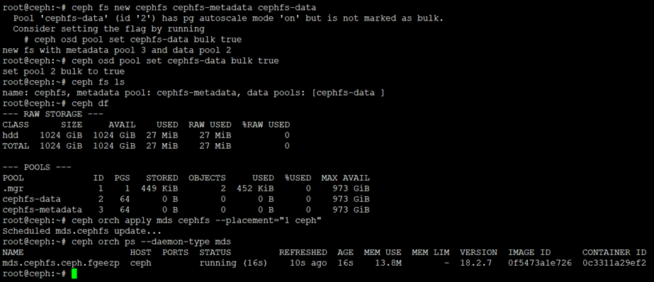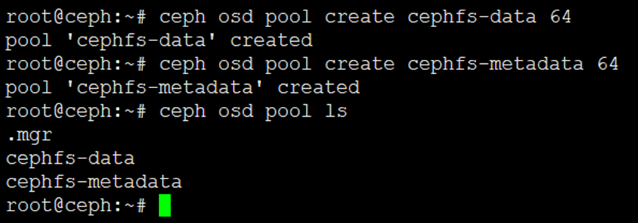 root@ceph:/etc/ceph# ceph auth print-key client.clientfs >/etc/ceph/clientfs.key