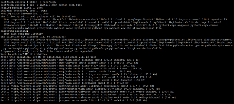 root@ceph-client:~# apt -y install ceph-common ceph-fuse