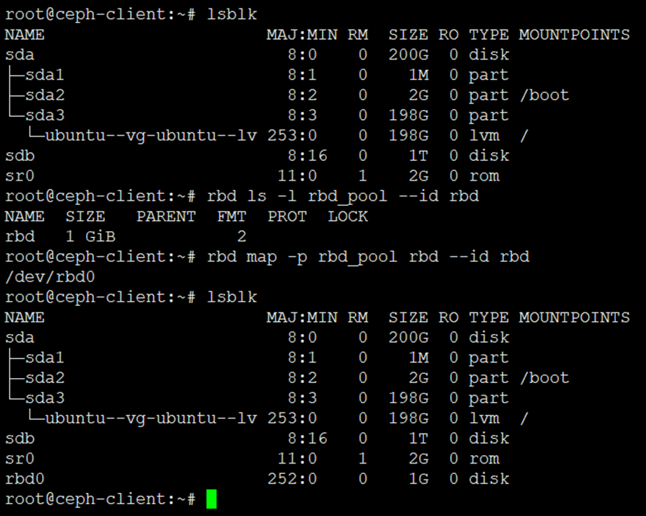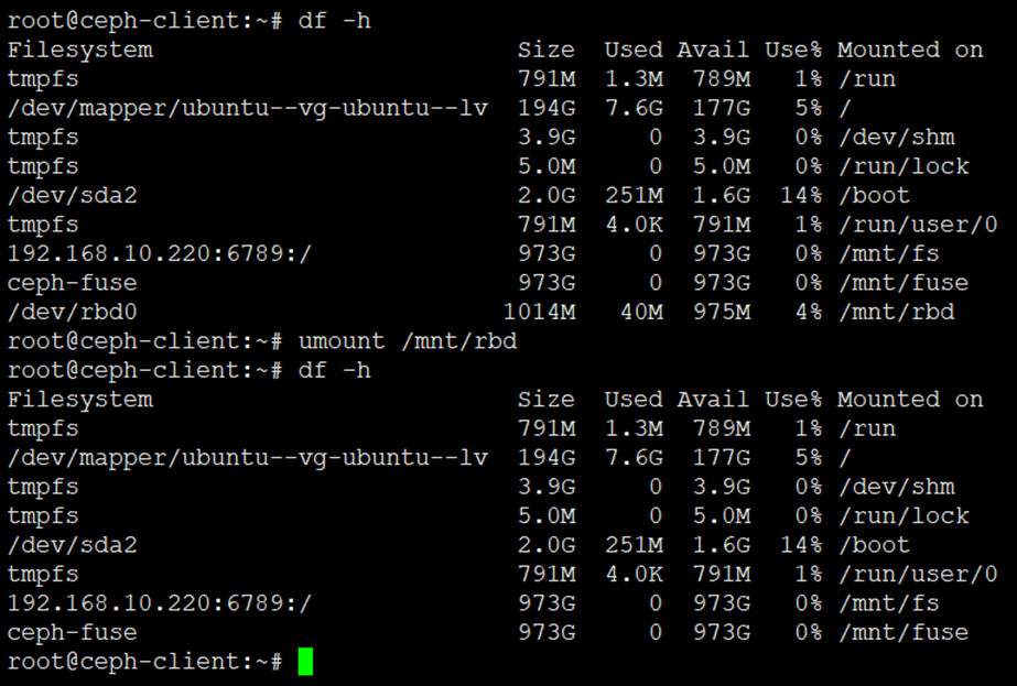 root@ceph-client:~# mount /dev/rbd0 /mnt/rbd/