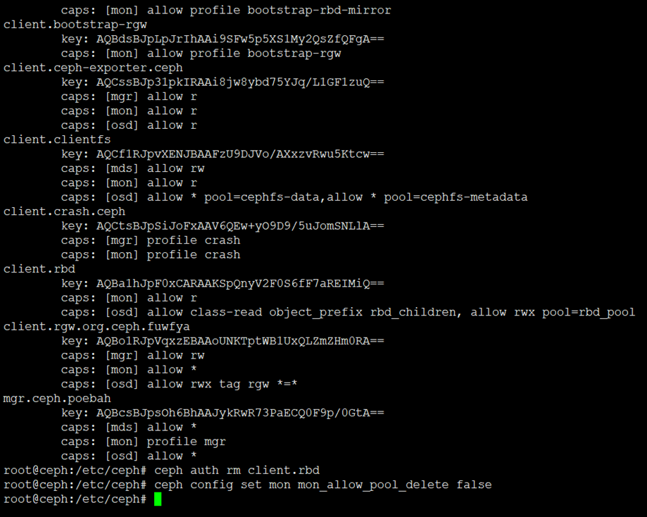root@ceph:/etc/ceph# ceph auth rm client.rbd