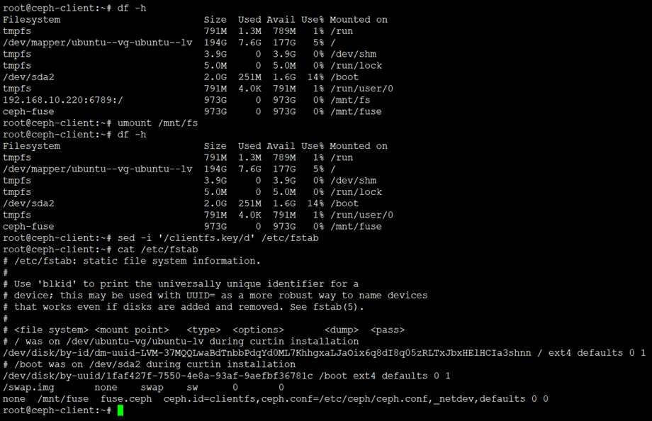 root@ceph-client:~# sed -i '/clientfs.key/d' /etc/fstab