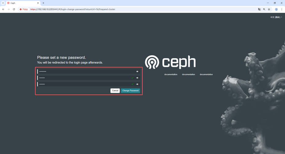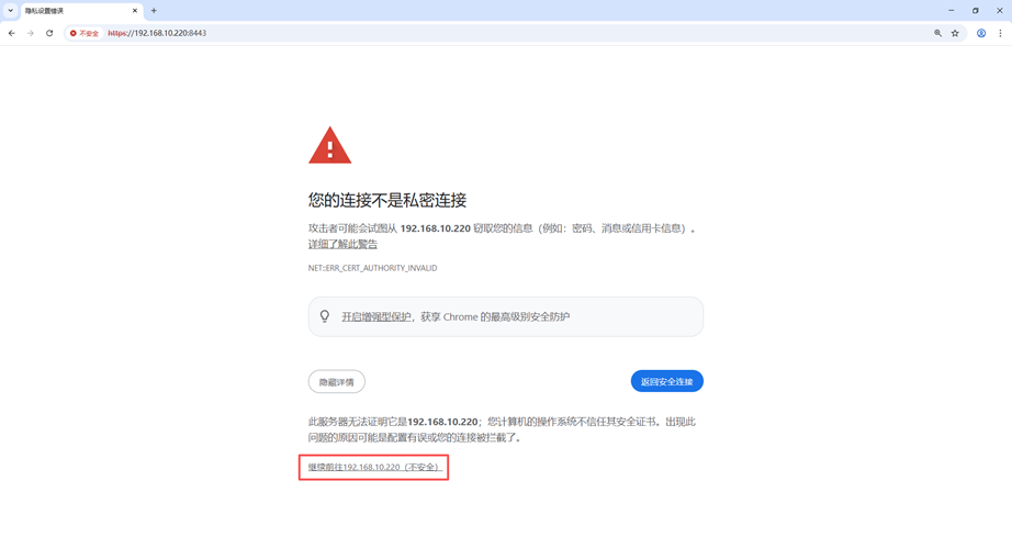 # 浏览器输入https://192.168.10.220:8443,如下图所示