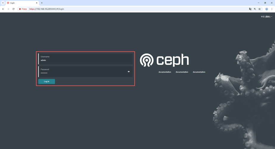 2)输入用户名密码,前面初始化集群会默认生成用户名密码