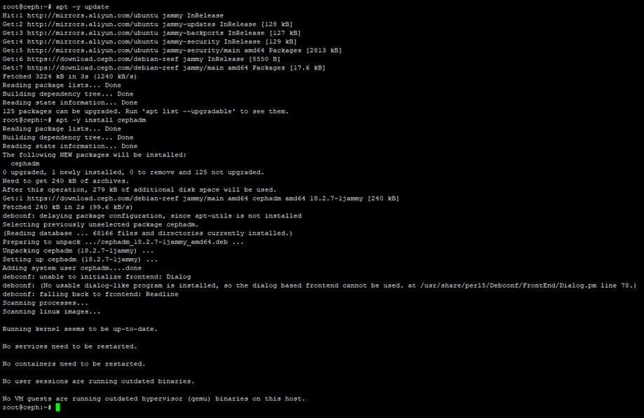 root@ceph:~# echo "deb https://download.ceph.com/debian-reef $(lsb_release -sc) main" >/etc/apt/sources.list.d/ceph.list