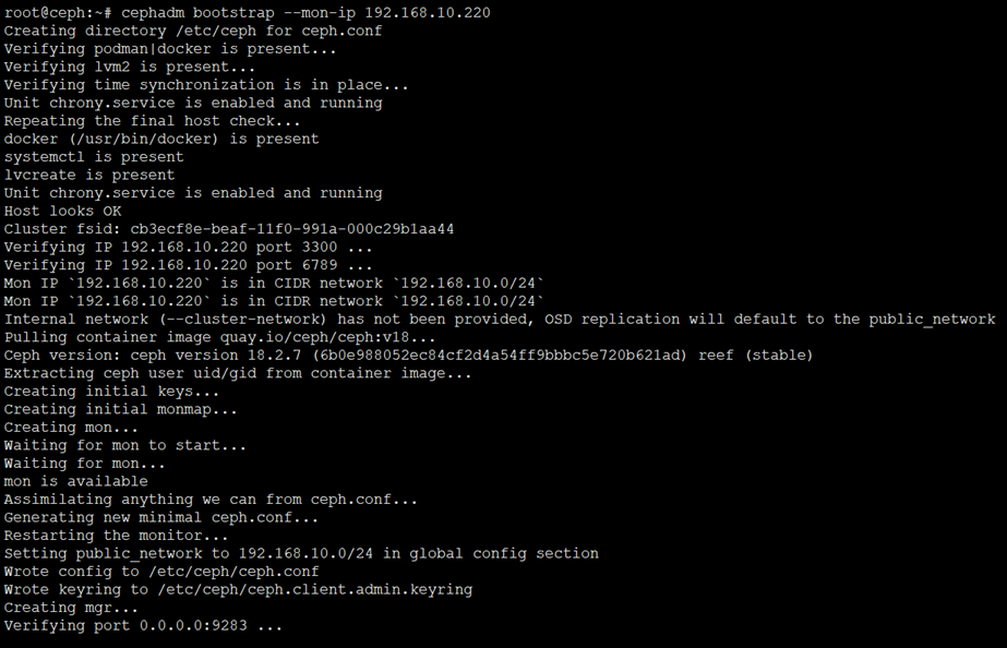 root@ceph:~# cephadm bootstrap --mon-ip 192.168.10.220