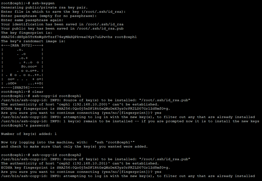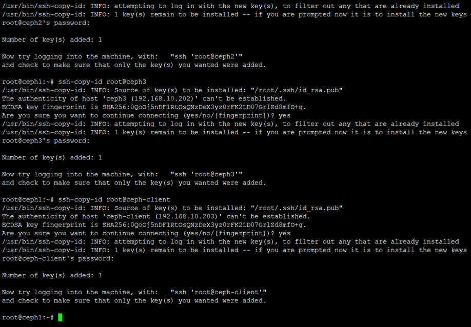 root@ceph1:~# ssh-copy-id root@ceph-client