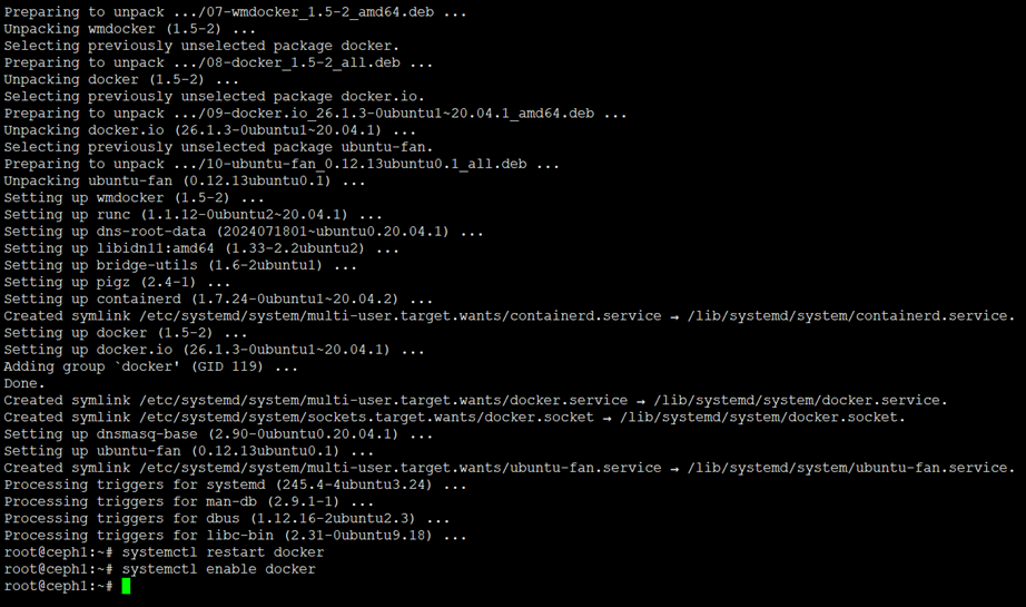 root@ceph1:~# cat >>/etc/hosts <<EOF