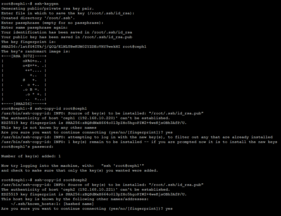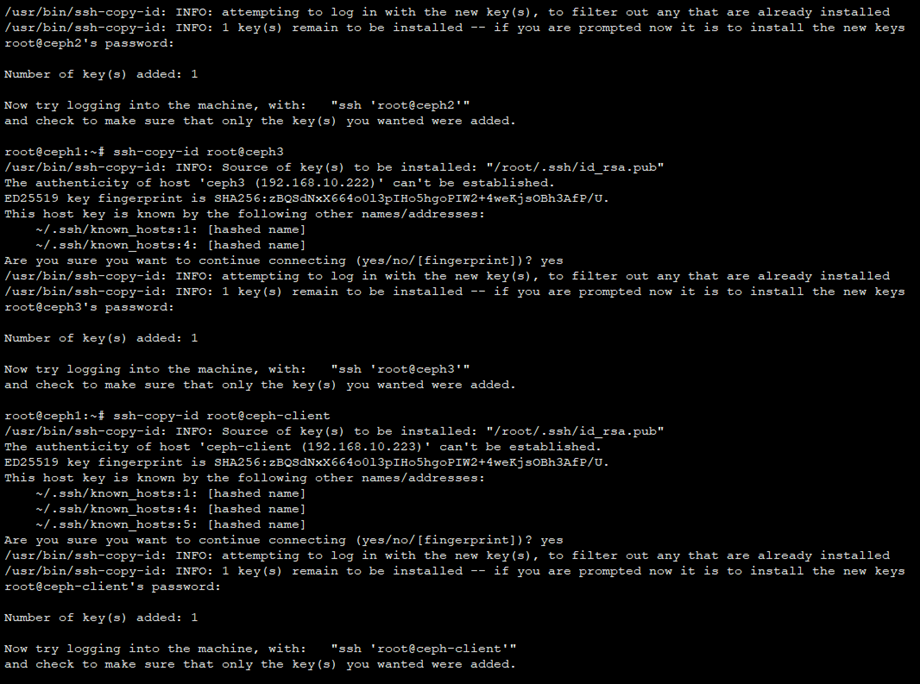 root@ceph1:~# ssh-copy-id root@ceph-client