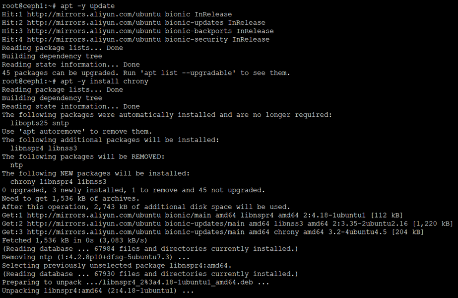 root@ceph1:~# apt -y install chrony