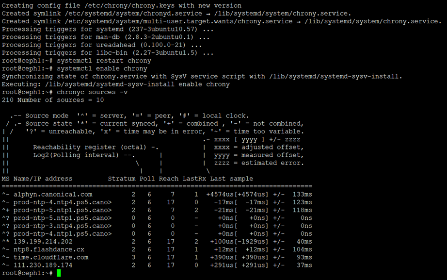root@ceph1:~# chronyc sources -v