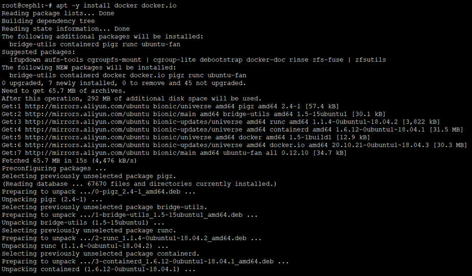 root@ceph1:~# apt -y install docker docker.io