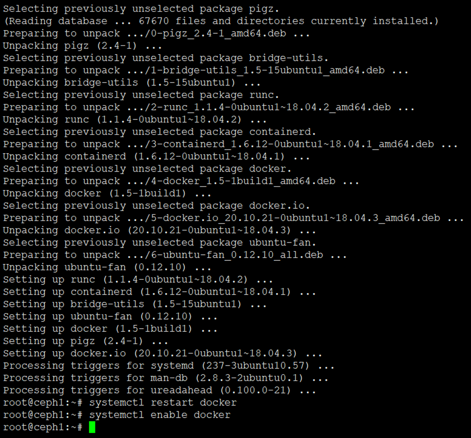 root@ceph1:~# systemctl enable docker
